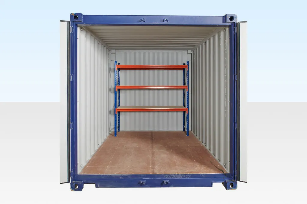 For the provision of racking in the container end, we offer a single bay of 1850mm three tier racking that can be assembled in the container.